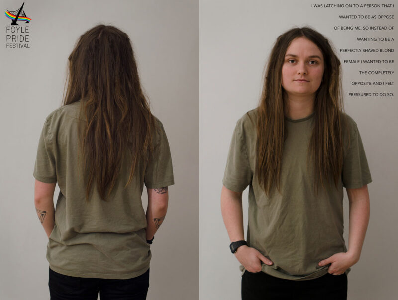 Pride Portraits heb ik gemaakt in samenwerking met Caro de Feijter. Deze portretten vertellen verhalen van jonge LHBTQI+ mensen uit Derry/Londonderry, Noord-Ierland. Dit project is in 2017 geƫxposeerd op verschillende openbare plekken in Derry/Londonderry tijdens de Foyle Pride Festival.